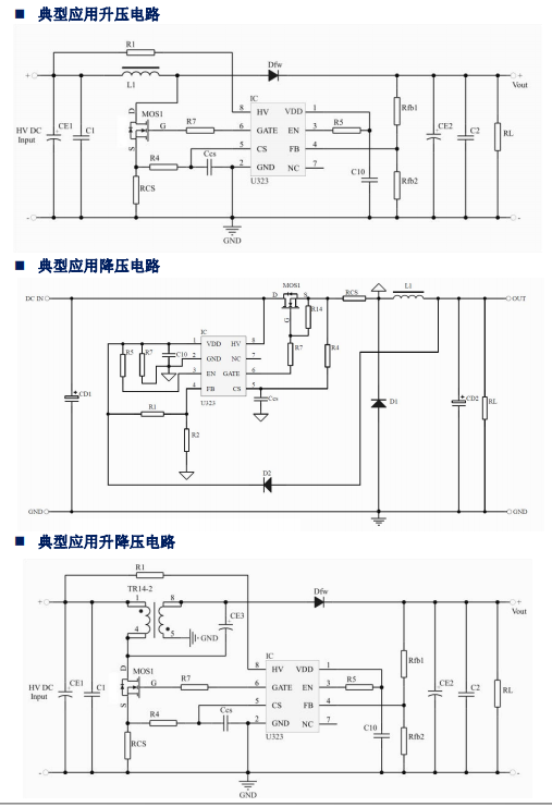 主要特點(diǎn):集成200V高壓?jiǎn)?dòng)電路;使用范圍:VIN-VOUT>3V,Io<15A;BUCK&BOOST兼容;低功耗模式工作;支持升壓、降壓和升降壓拓?fù)?待機(jī)功耗低于50mW;良好的線性調(diào)整率和負(fù)載調(diào)整率;集成軟啟動(dòng)電路;內(nèi)部保護(hù)功能:過(guò)載保護(hù)(OLP)、逐周期電流限制(OCP)、輸出過(guò)壓保護(hù)(OVP)、VDD過(guò)壓、欠壓和電壓箝位保護(hù)
