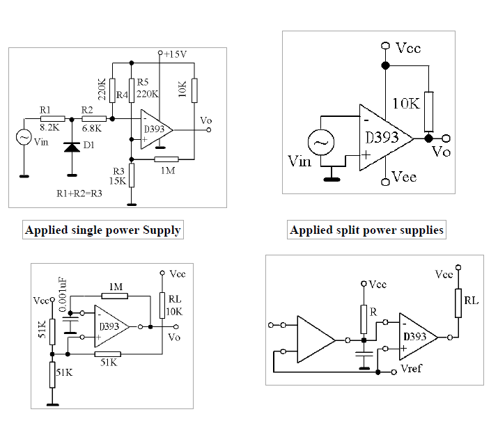 U393由兩個獨立的電壓比較器組成,其失調(diào)電壓規(guī)格低至最大2.0 mv。兩個比較器,專門設(shè)計用于在寬電壓范圍內(nèi)從單個電源運(yùn)行。從分離電源操作也是可能的,并且低電源電流損耗與電源電壓的大小無關(guān)。這些比較器還具有一個獨特的特性,即輸入共模電壓范圍包括接地,即使是在單一電源電壓下工作。