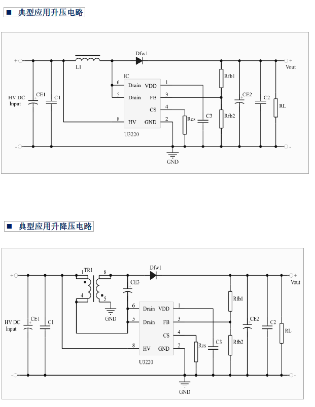產品描述:U3220是一款高性能低成本 PWM 控制功率 器,適用于離線式小功率升壓、降壓和升降壓 用場合,外圍電路簡單器件個數少。同時產品 啟動模塊內置高耐壓 MOSFET可提高系統浪涌耐 能力 。 與傳統的 PWM 功率開關不同,U3220內部 無固定時鐘驅動 MOSFET,系統開關頻率隨負載 變化可實現自動調節同時芯片采用了多模式 PWM 控制技術, 有效簡化了外圍電路設計 升線性調整率和負載調整率并消除系統工作中的 可聞噪音。此外,芯片內部峰值電流檢測閾值可 跟隨實際負載情況自動調節,可以有效降低空載 情況下的待機功耗。 U3220集成有完備的帶自恢復功能的保護功 能:VDD欠壓保護、逐周期電流限制、輸出過壓 保護、過熱保護、過載保護和 VDD 過壓保護等。
