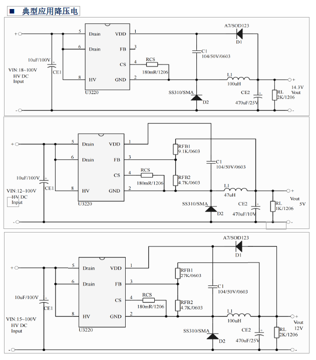 主要特點:VIN: 12~100V(OUT:ADJ) ;集成7A 100V (10A 100V) MOS 集成 180V 高壓啟動電路 ;多模式控制、無異音工作;支持升壓、降壓和升降壓拓撲 FB 腳懸空) ;待機功耗低于 50mW ;良好的線性調整率和負載調整率 ;集成軟啟動電路 ;內部保護功能: 過載保護 (OLP) ;逐周期電流限制 (OCP) ;輸出過壓保護 (OVP) ;VDD