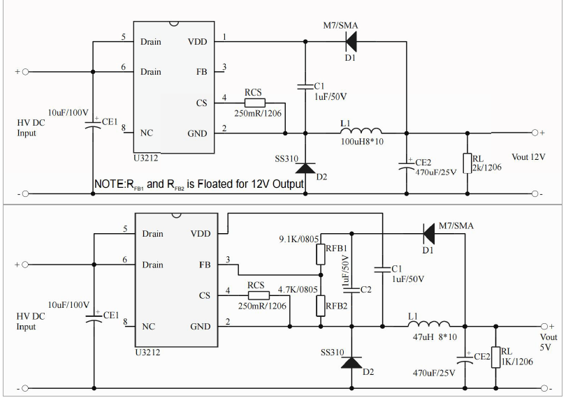 •主要特點:集成 5A 200V MOS /;集成 200V 高壓啟動電路;多模式控制、無異音工作;支持降壓和升降壓拓撲;默認12V 輸出(FB 腳懸空);待機功耗低于 50mw;良好的線性調整率和負載調整率;集成軟啟動電路;內部保護功能:過載保護(OLP);逐周期電流限制(OCP);輸出過壓保護(OVP);VDD 過壓、欠壓和電壓箝位保護